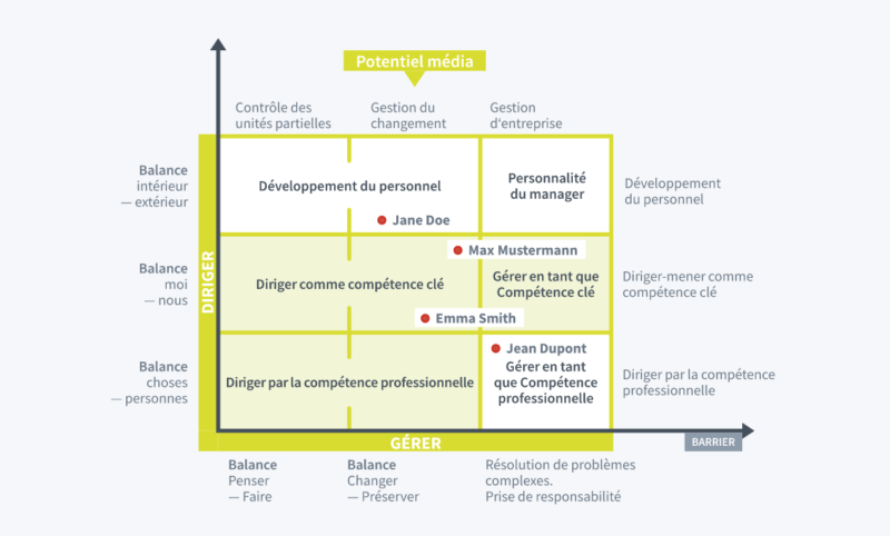 Le système montre quels sont les besoins, les motivations et les compétences qui sont au premier plan ou à l’arrière-plan pour une personne. L’hypothèse de base est que l’adéquation entre les exigences du poste et les caractéristiques personnelles est cruciale pour la réussite.